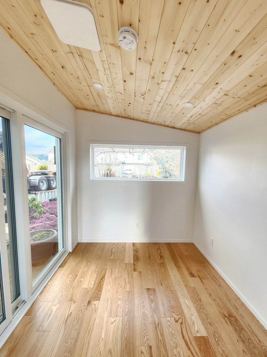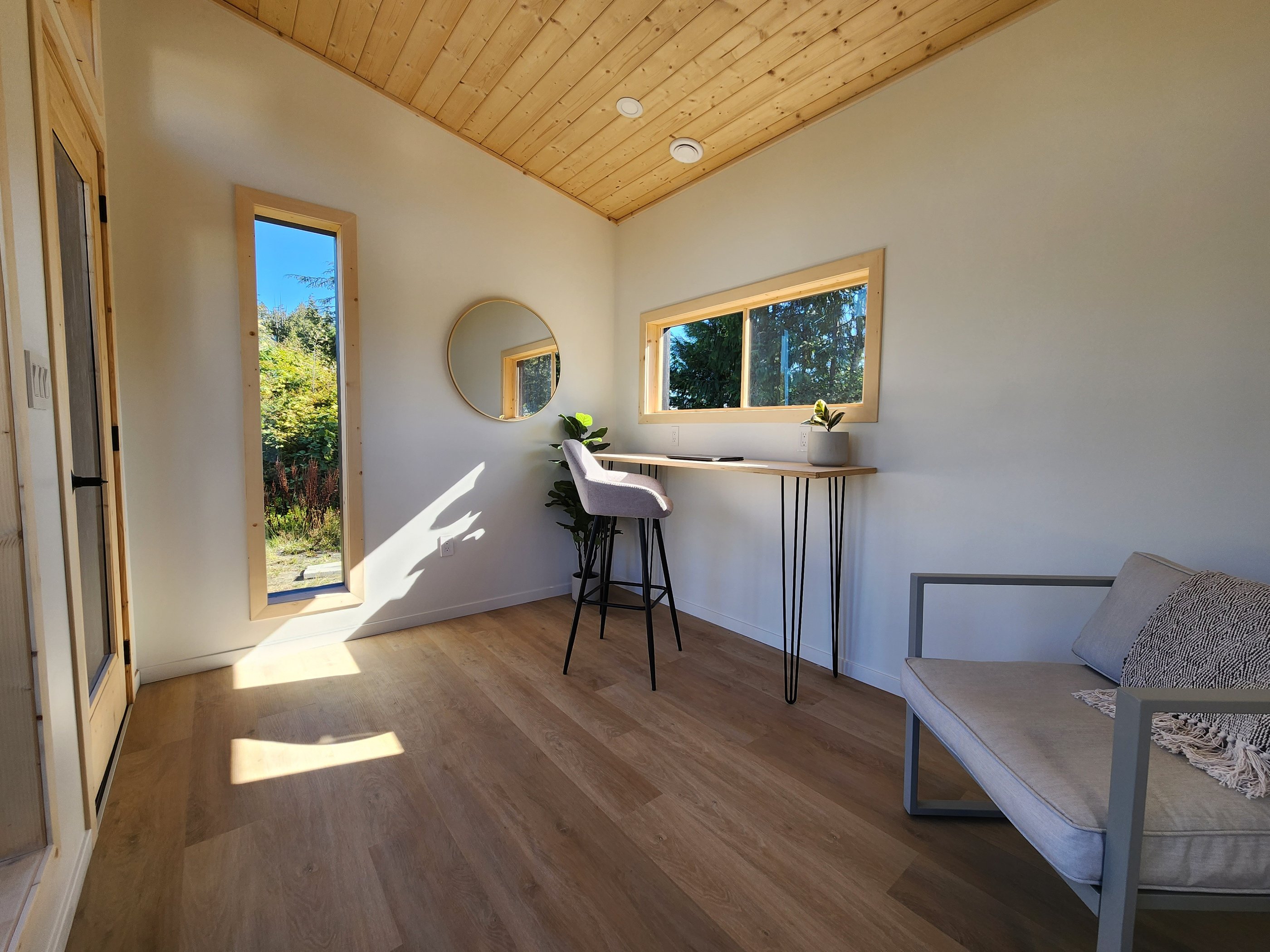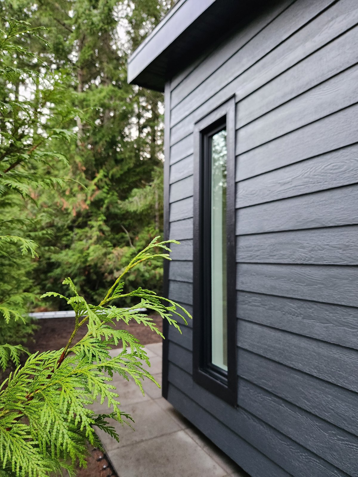 Kubu studios are designed and constructed with quality in mind. We use sturdy 2x6 lumber for wall and roof construction. The exterior walls are clad with durable LP Smart Side engineered wood and the interior is finished with drywall, pine ceilings and stone composite flooring. This durable design will last for many years to come.
